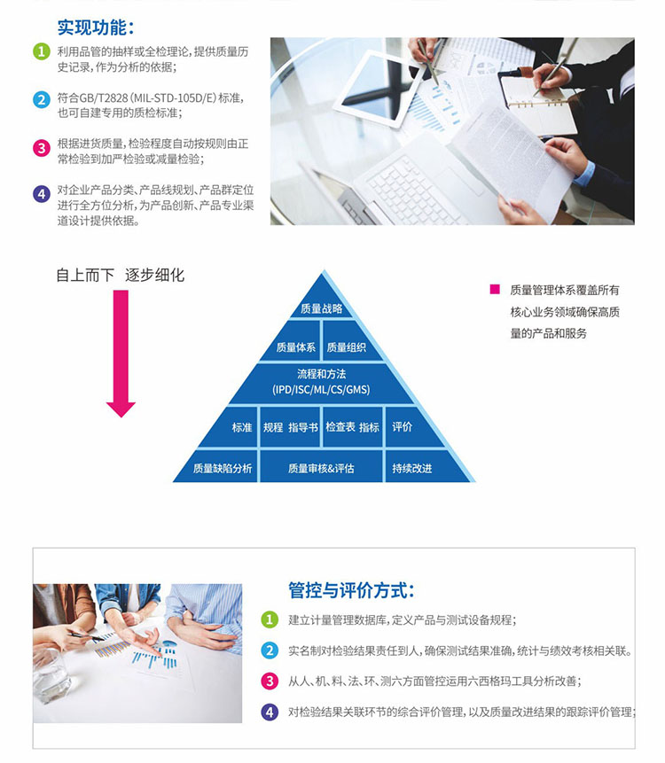 系統(tǒng)特色:實(shí)現(xiàn)測(cè)試結(jié)果自動(dòng)采集,不良標(biāo)簽自動(dòng)打印等,對(duì)進(jìn)料檢驗(yàn)、制造、驗(yàn)貨等業(yè)務(wù)過程的質(zhì)量監(jiān)控,基于質(zhì)量監(jiān)控規(guī)則展開在線預(yù)警,同時(shí)支持質(zhì)量改進(jìn)過程跟蹤管理。