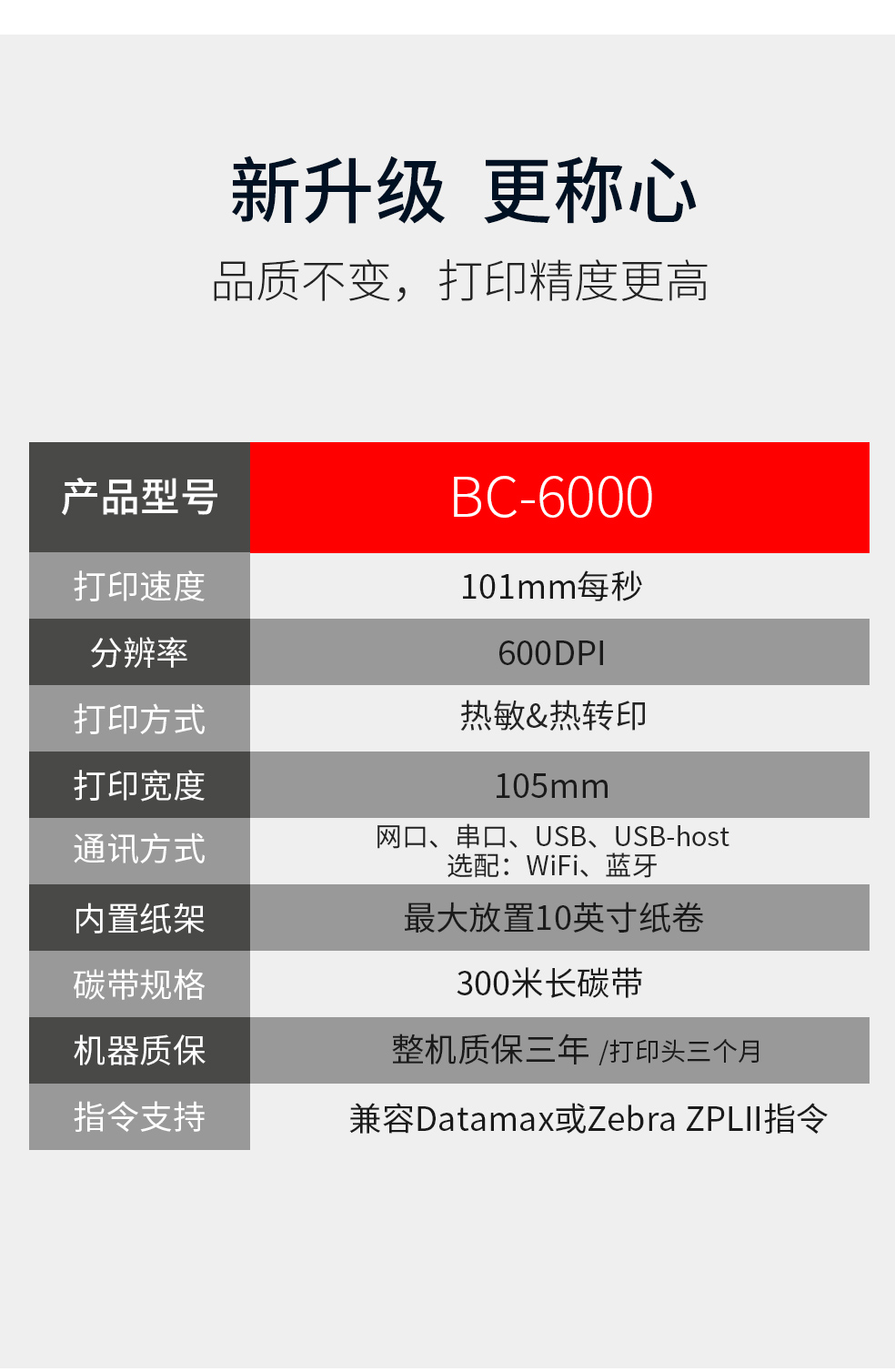 BC-6000 4英寸金屬結構多功能接口條碼標簽打印機